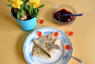 Crêpe mit Erdbeerkonfitüre